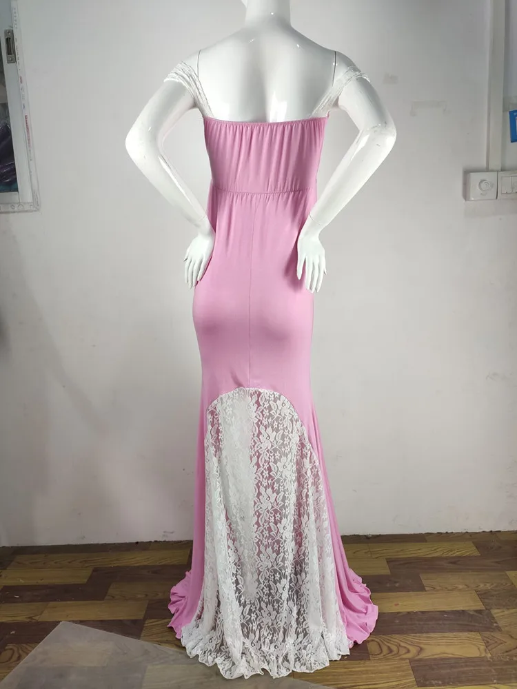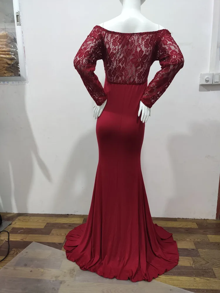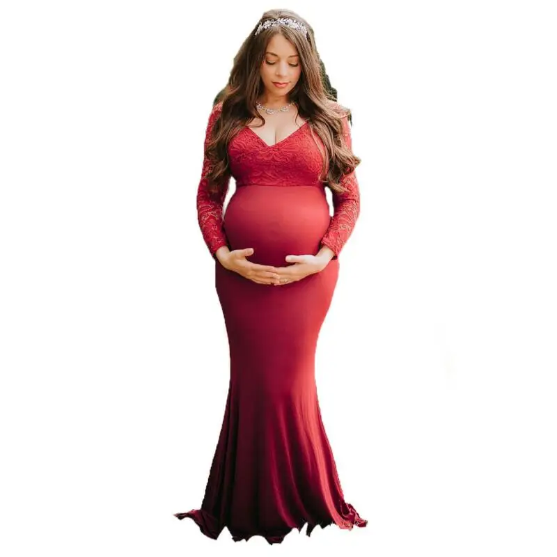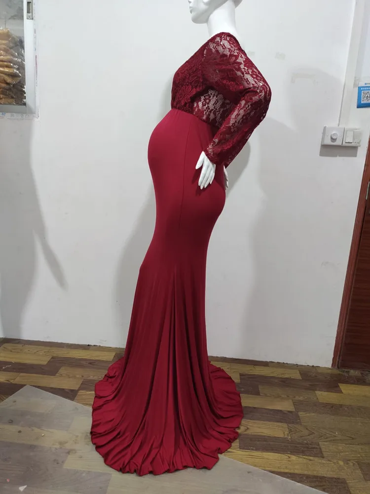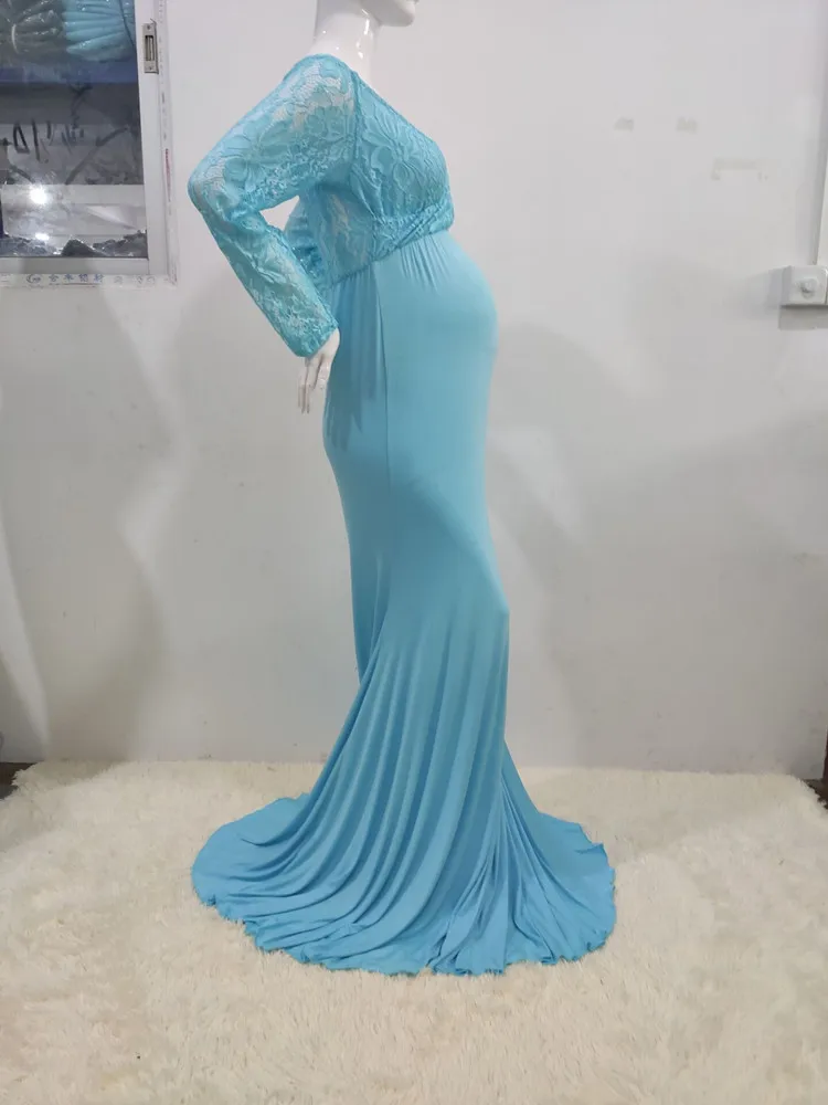 Maternity Long Sleeve Dresses - Pregnant Women Cotton Lace Stitching Slim Maxi Gown (Z6)(1Z1)(2Z1)(3Z1)(7Z1)
