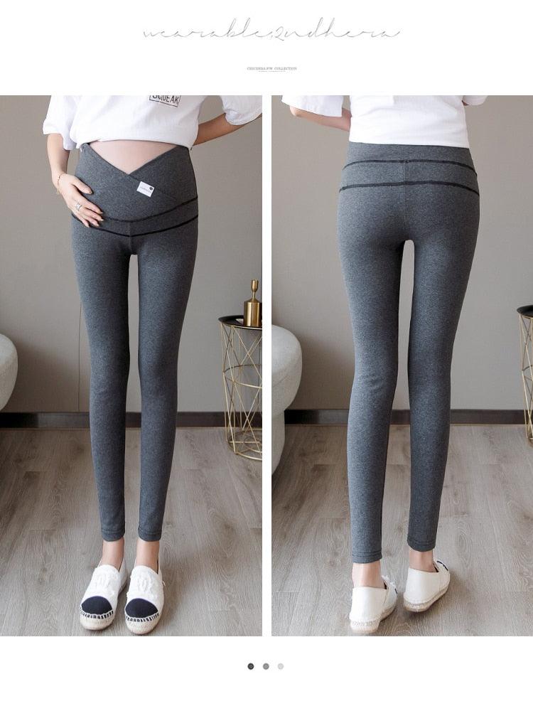 New Autumn Winter Skinny Maternity Legging - Across V Low Waist Belly Legging for Pregnant Women Cotton Pregnancy Pencil Pants (2Z7)(7Z2)(1U4)