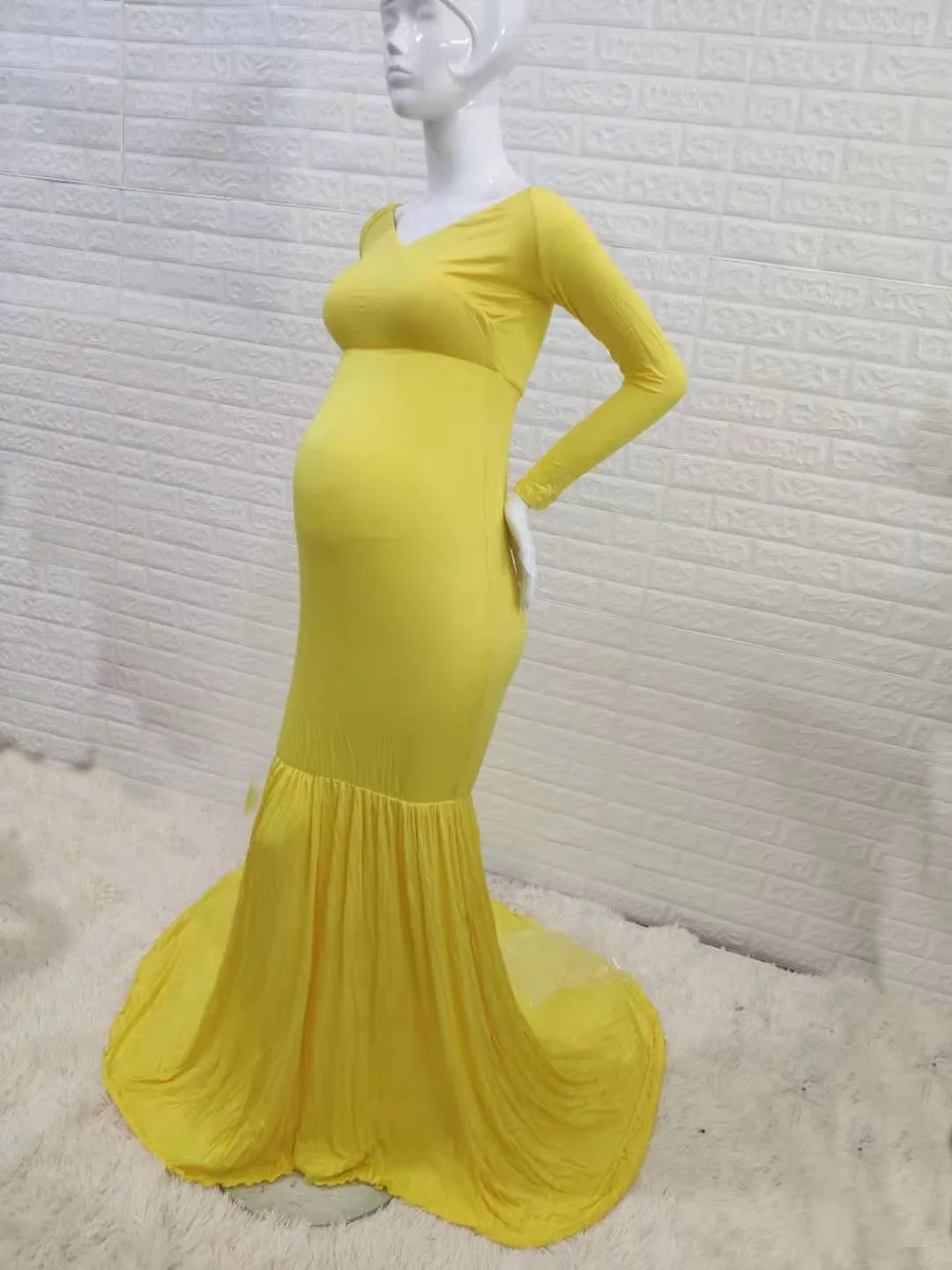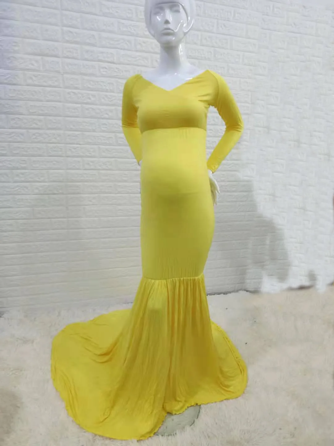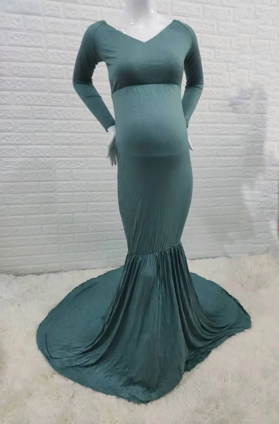 Nice Mermaid Maternity Long Dress Photo Shoot - Pregnant Women Pregnancy Cotton Chiffon Photography Prop Sexy V-Neck Maxi Gown (Z6)(1Z1)(2Z1)(3Z1)(7Z1)