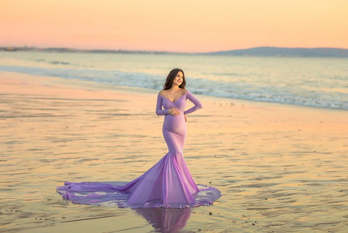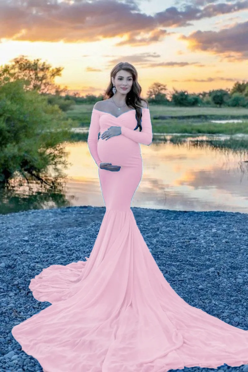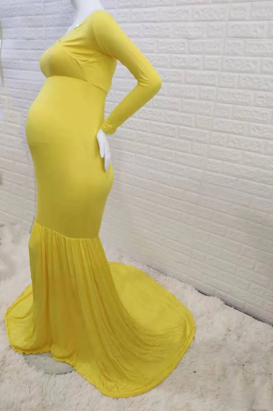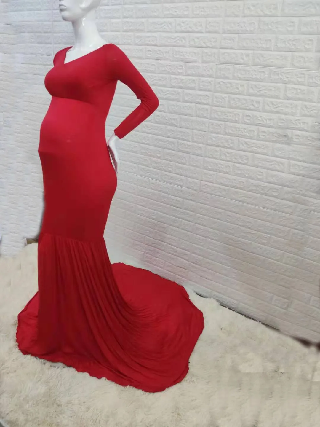 Nice Mermaid Maternity Long Dress Photo Shoot - Pregnant Women Pregnancy Cotton Chiffon Photography Prop Sexy V-Neck Maxi Gown (Z6)(1Z1)(2Z1)(3Z1)(7Z1)
