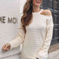 Ribbed Cold Shoulder Round Neck Pullover Sweater