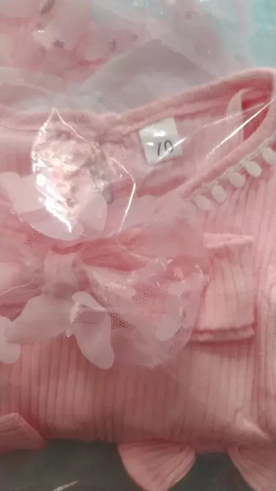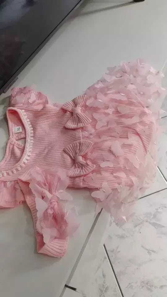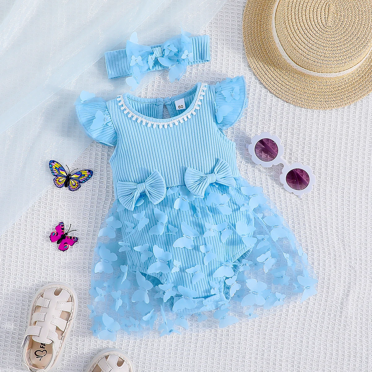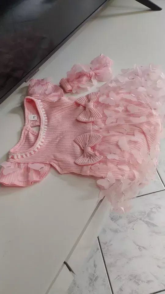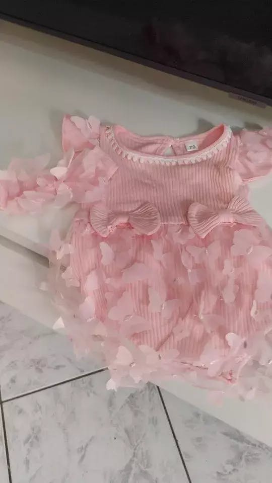 Set Dress For Kids 0-18 Months old Birthday Pink Butterfly Sleeve Tulle Princess Formal Dresses Ootd For Newborn Baby Girl