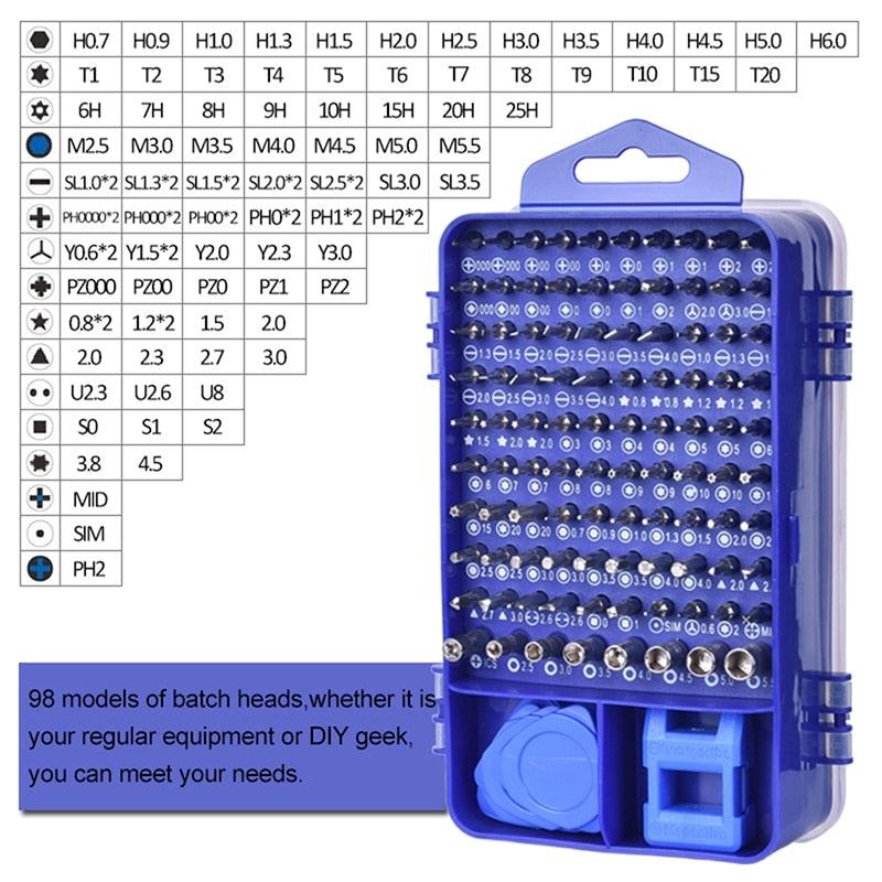 Useful Repair Tools Kit Screwdriver Set - Precision 115 In 1 Magnetic Torx Hex Bit Screw Driver Bits Insulated Multitools (7WH1)(F89)